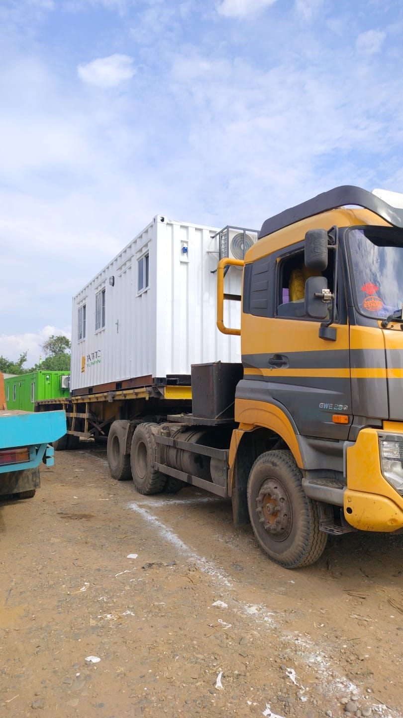 Sebelum kontainer meninggalkan workshop, tim kami melakukan inspeksi menyeluruh. Kami memastikan bahwa setiap komponen—dari dinding, pintu, hingga fasilitas tambahan seperti AC, partisi, atau toilet—berfungsi dengan sempurna.Pengangkutan Profesional