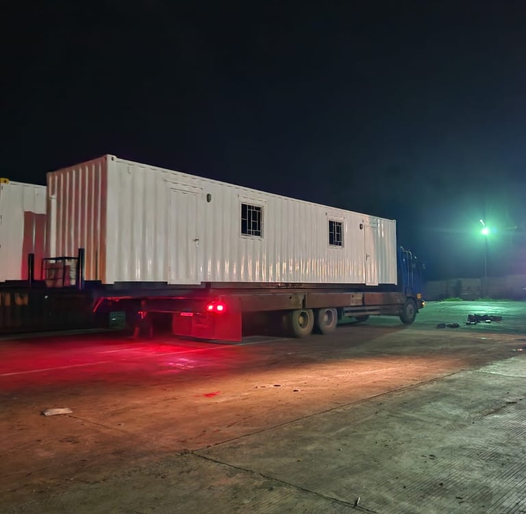 Setelah beberapa jam, di tengah suasana yang semakin dingin, sang pengemudi akhirnya tiba di lokasi tujuan. Sebuah situs proyek yang gelap, tetapi penuh harapan. Cahaya dari lampu sorot lokasi mulai menerangi area yang akan menjadi pusat aktivitas esok hari. Dengan hati-hati, trailer mulai menurunkan kontainer office 40 feet tersebut, yang akan segera dirakit dan diubah menjadi ruang kantor yang siap pakai.
